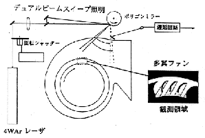 置は、図に示すように多翼ファン、光源、回転シャッ